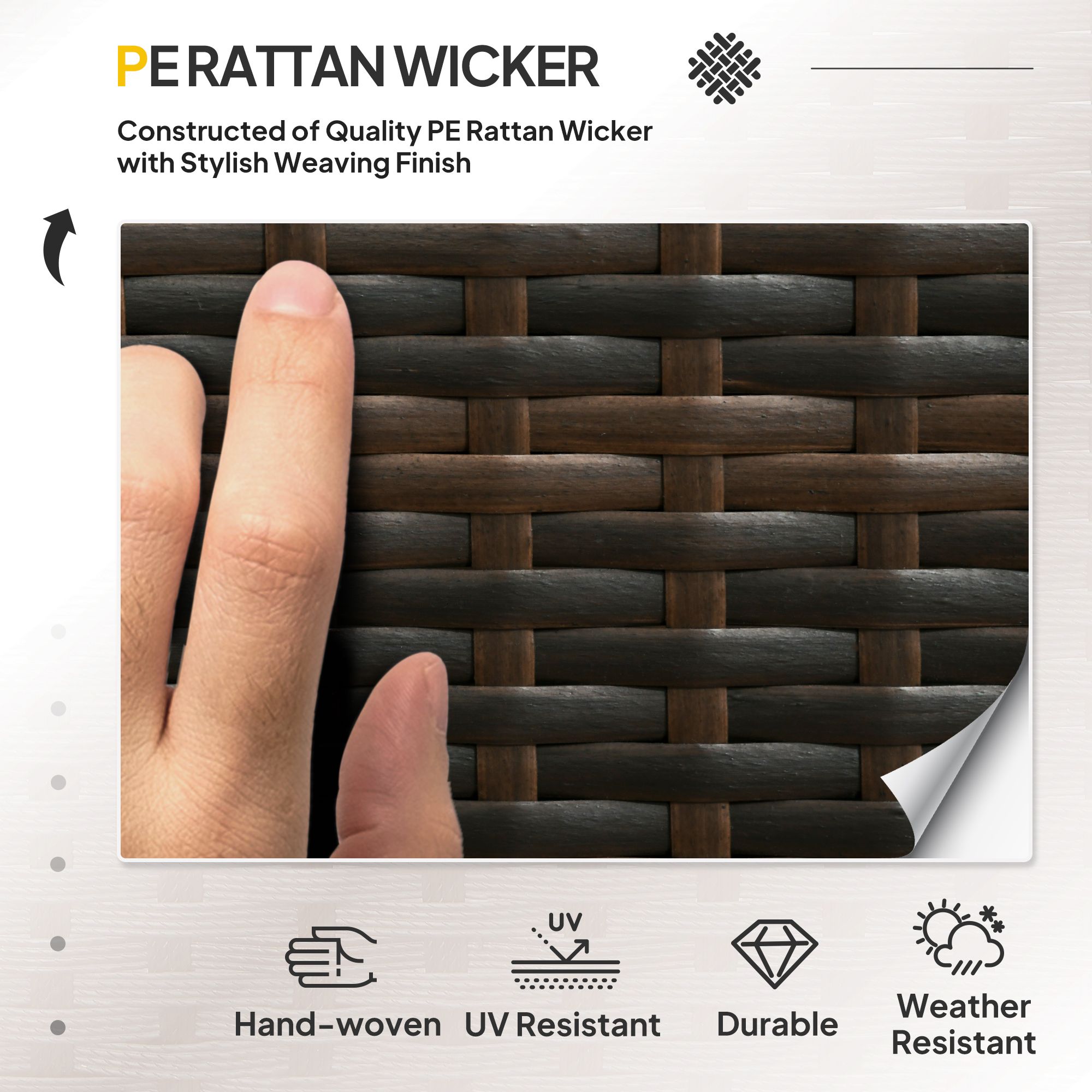• High-quality Material: This patio furniture sets are made of a rust-resistant galvanized steel frame with a powder-coated finish that ensures strength and stability, wrapped with high-end wicker. Our set's frame and outdoor use fabric is water-resistant, won't rust, and were personally selected to withstand the strain of outdoor use.
