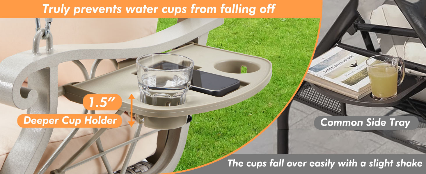 2.106.3" longer chains allow wider swing angles and height flexibility, plus deeper cup holders keep drinks secure.