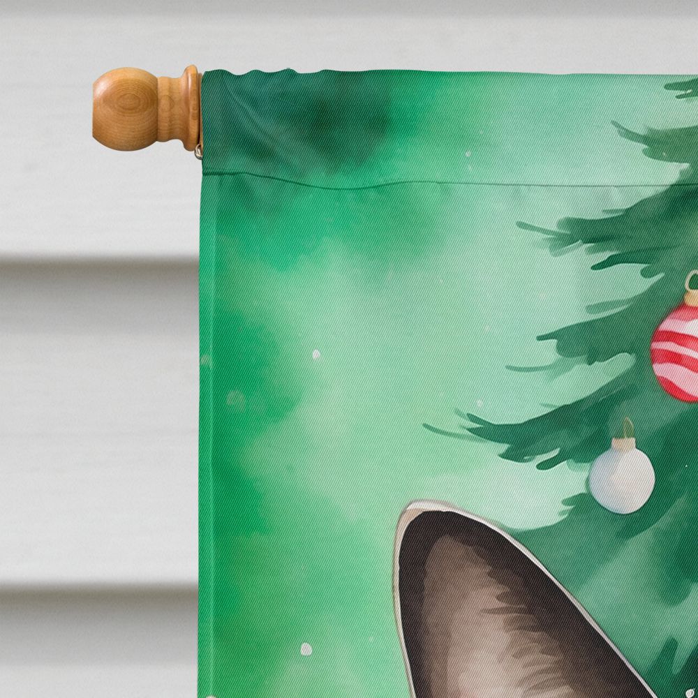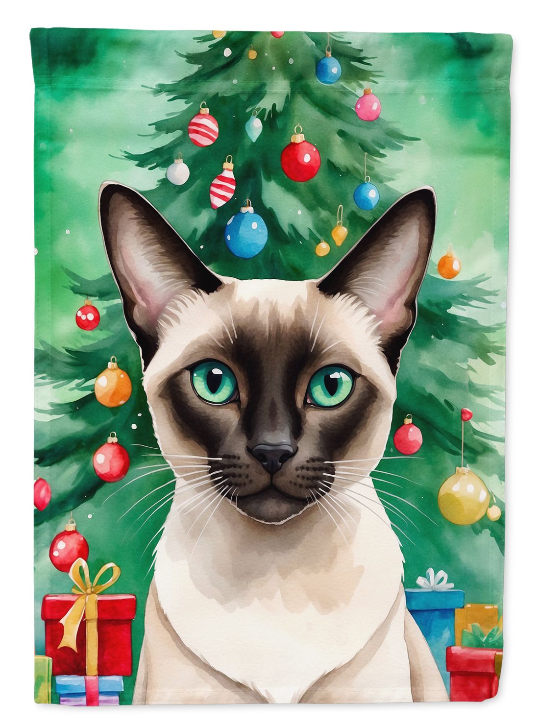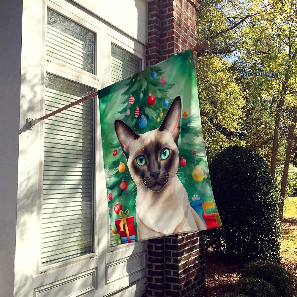 Colorpoint Shorthair Cat By the Christmas Tree House Flag Large Porch Sleeve Pole Decorative Outside Yard Banner Artwork Wall Hanging, Polyester