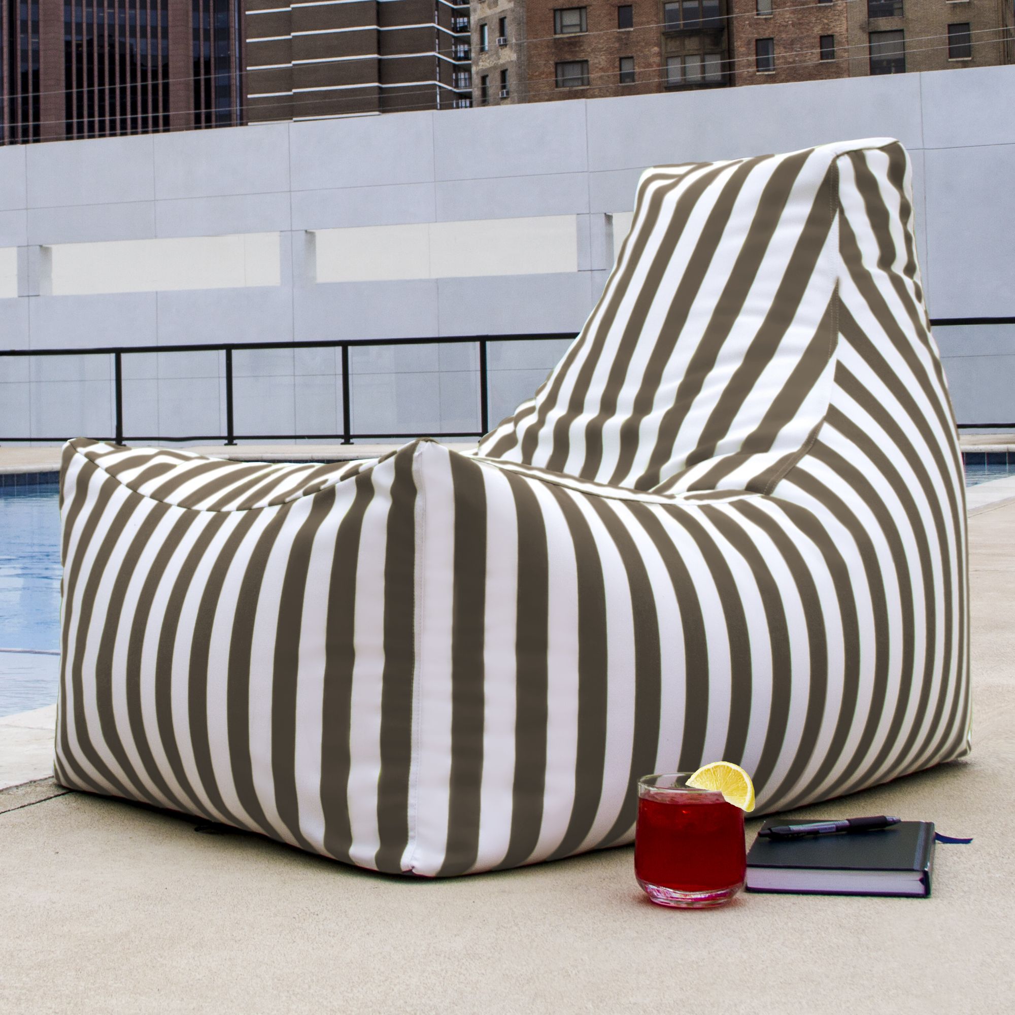 Jaxx Juniper Outdoor Bean Bag Patio Chair, Taupe Stripes