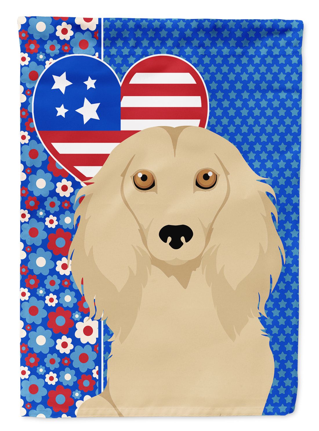 Home > Longhair Cream Dachshund USA American House Flag Large Porch Sleeve Pole Decorative Outside Yard Banner Artwork Wall Hanging, Polyester, House Size