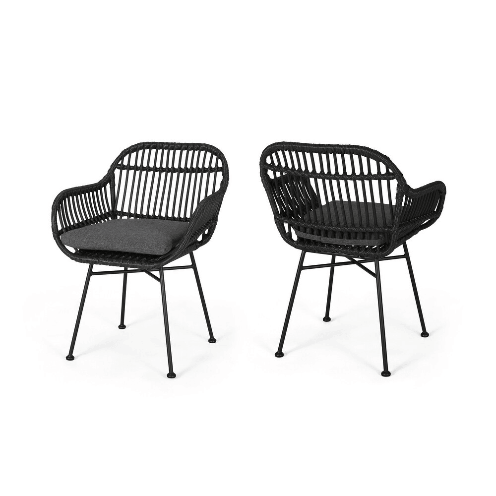 Orlando Faux Rattan Chairs (Set of 2) , Dark Gray Finish