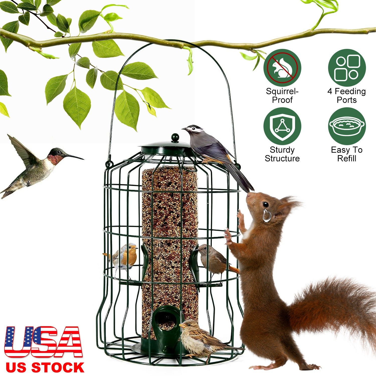 *Premium Material*:Made of sturdy metal structure and durable PC tube,can withstand different weather conditions,like rain,wind,snow,heat,frost,etc.,provide you long lasting service life. Besides,transparent tube is convenient for you to observe and refill the food.
