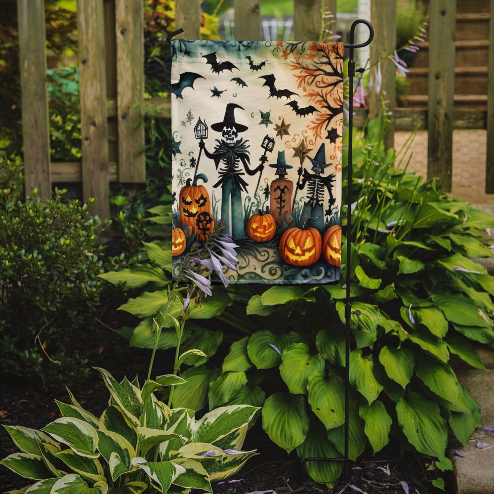 Celebrate Halloween with this Halloween Garden Flag. Enhance the beauty of your garden, patio, or yard with Caroline's Treasures Decorative Garden Flag, proudly made in the USA. Crafted from two pieces of thick, double-sided polyester fabric, this 2-ply garden flag is designed to withstand various weather conditions, making it water-resistant and weatherproof. Featuring correctly readable words on both sides, this garden flag offers a delightful visual experience from any angle. With its heavier weight, it stands out among other garden flags, ensuring stability and durability even in wind, rain, and snow. Measuring approximately 11 1/4 inches by 15 1/2 inches, this flag allows you to personalize your outdoor decor. It comes with a 1 1/2-inch sleeve sewn in, allowing easy attachment to any standard garden flag stand or garden size porch hanger (sold separately). Make a statement in your outdoor space with Caroline's Treasures Decorative Garden Flag, a vibrant and high-quality flag that adds color and personality to your surroundings. Proudly made in the USA, it's a symbol of quality craftsmanship and attention to detail.