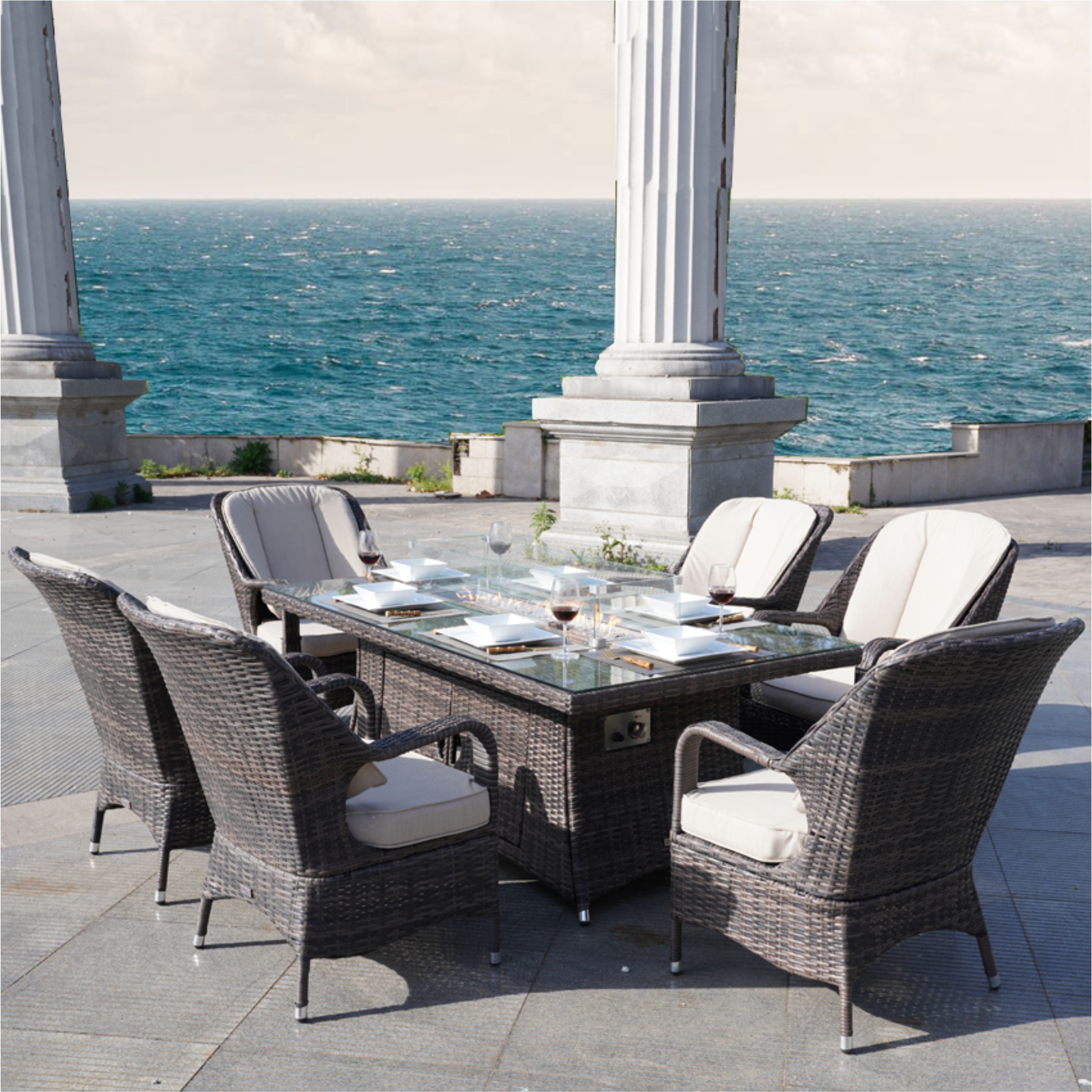 One gas fire-pit dining set=one rectangular table+six chairs with cushions