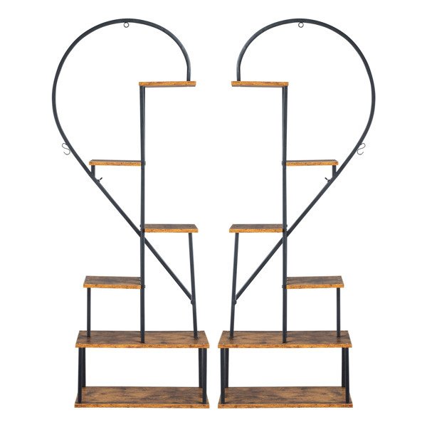 Artisasset 2pcs 6 Layers Half Heart Iron Wood Suitable For Garden Balcony Patio Lawn Home Decoration Plant Stand Flower Pot Stand Iron Flower Stand Bl