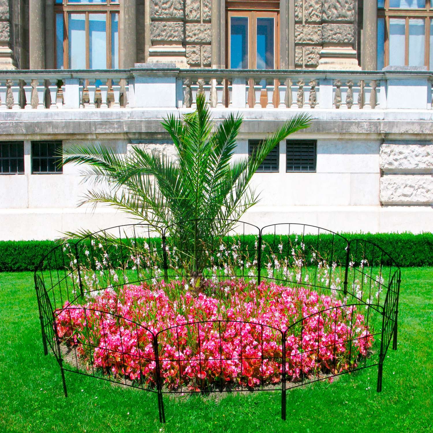 *Customizable Fence Size*:Come with 10pcs black metal garden fences,each fence measuring 12.59' in width and 23.93' in length,the whole length can be extended to cover about 10.5ft. What’s more,flexible set-up wire fences allow you to customize to 'L' shape,'O' shape,or any other shapes according to various path,garden and yard edging.