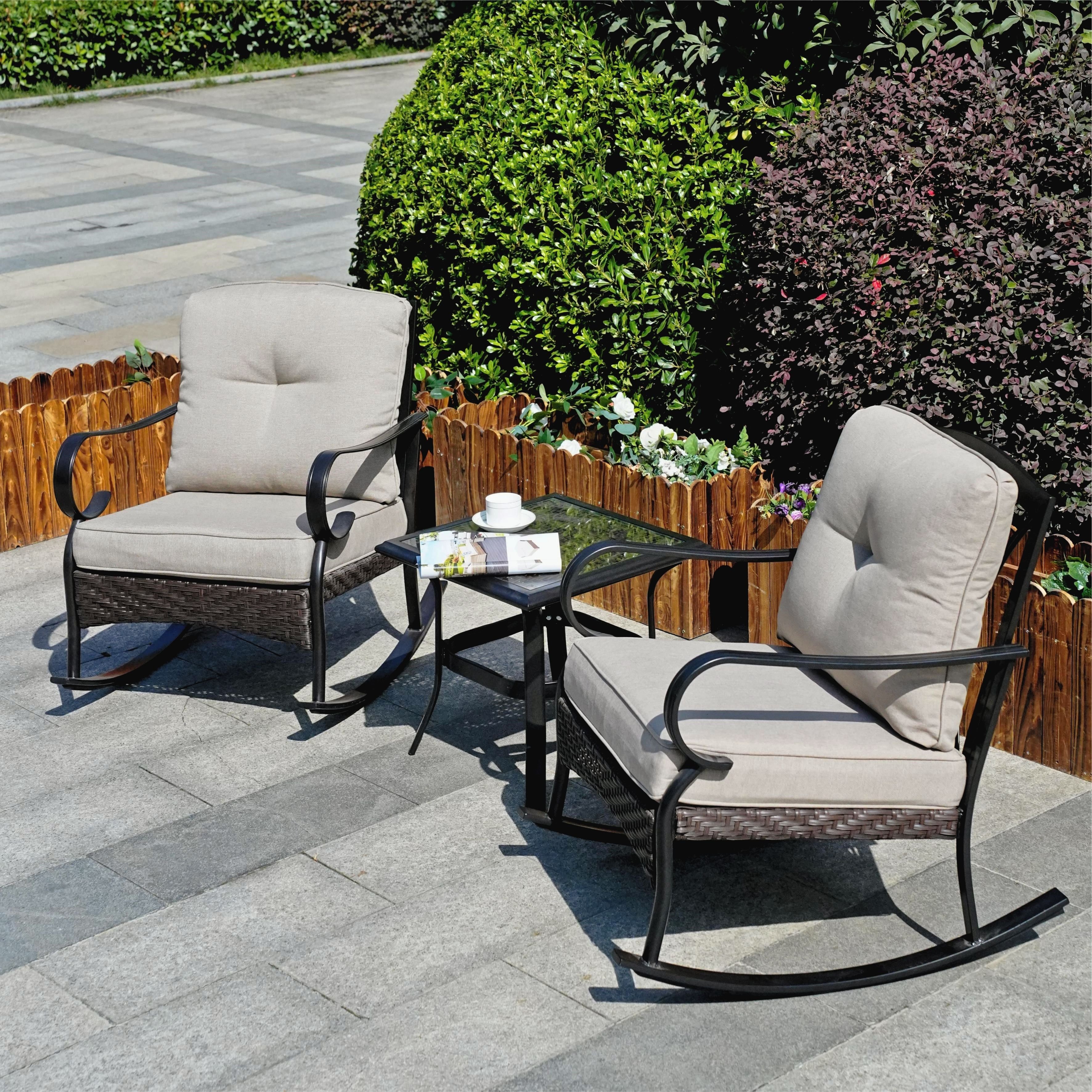 Home > Patio Garden Wicker Rocking Chair*2 and H18.91" Table Set, Tempered Glass Top