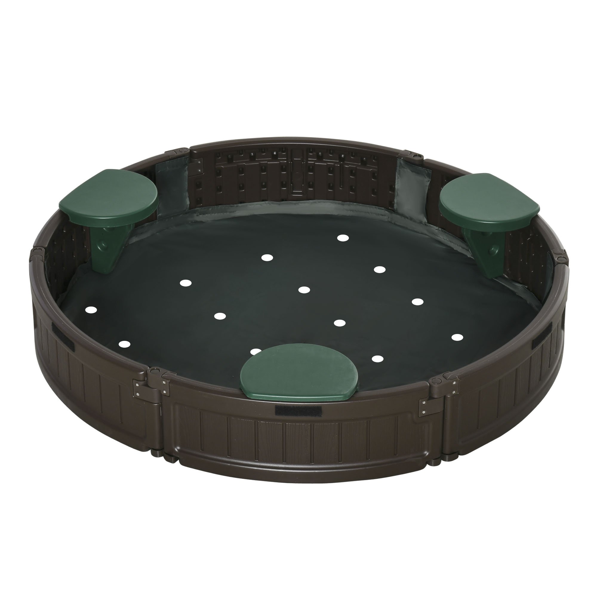 Outsunny Kids Outdoor Sandbox with Cover Garden Bed, Easy Assembly Children's Round Sandbox for Backyard, Brown, 48.5" x 48.5" x 8.75"