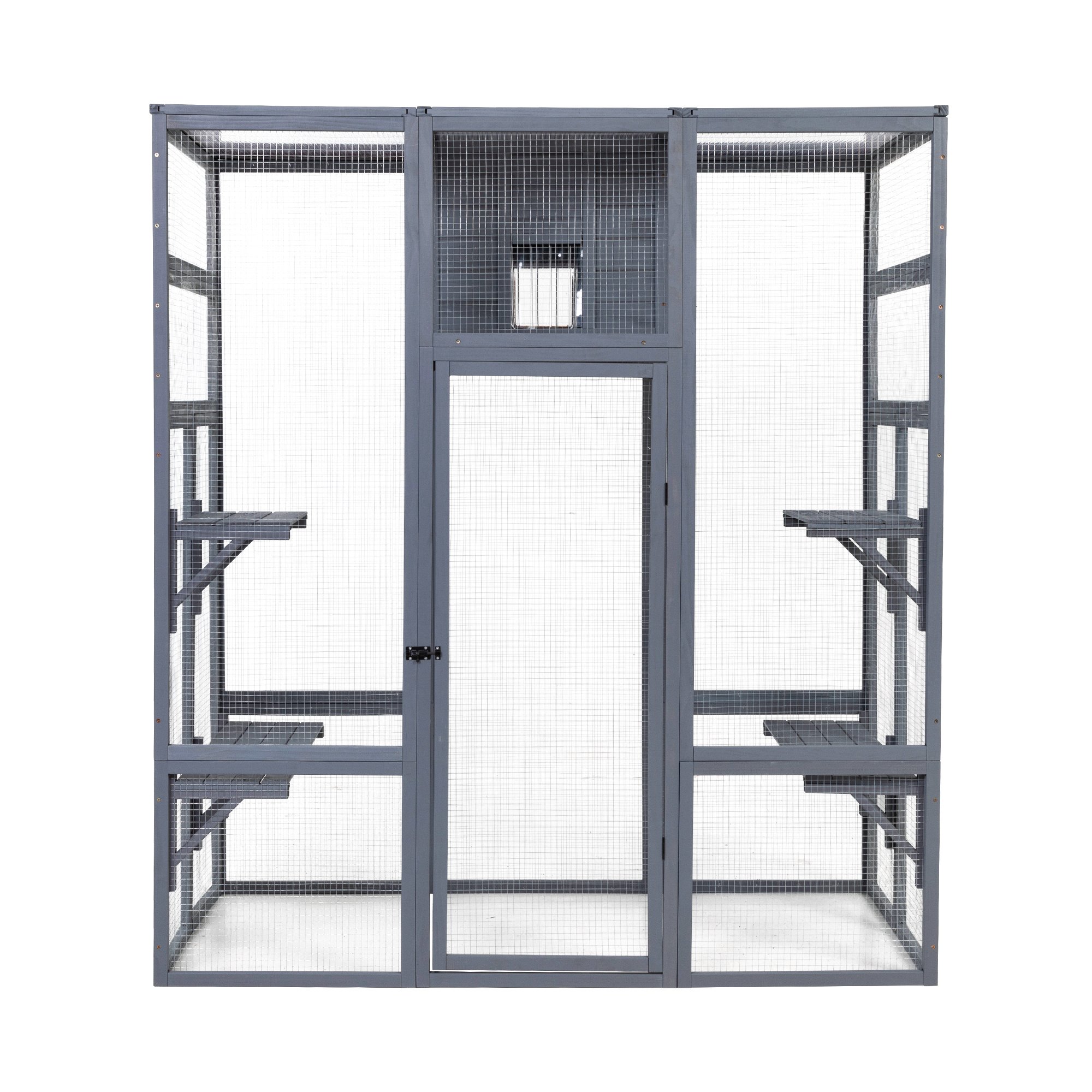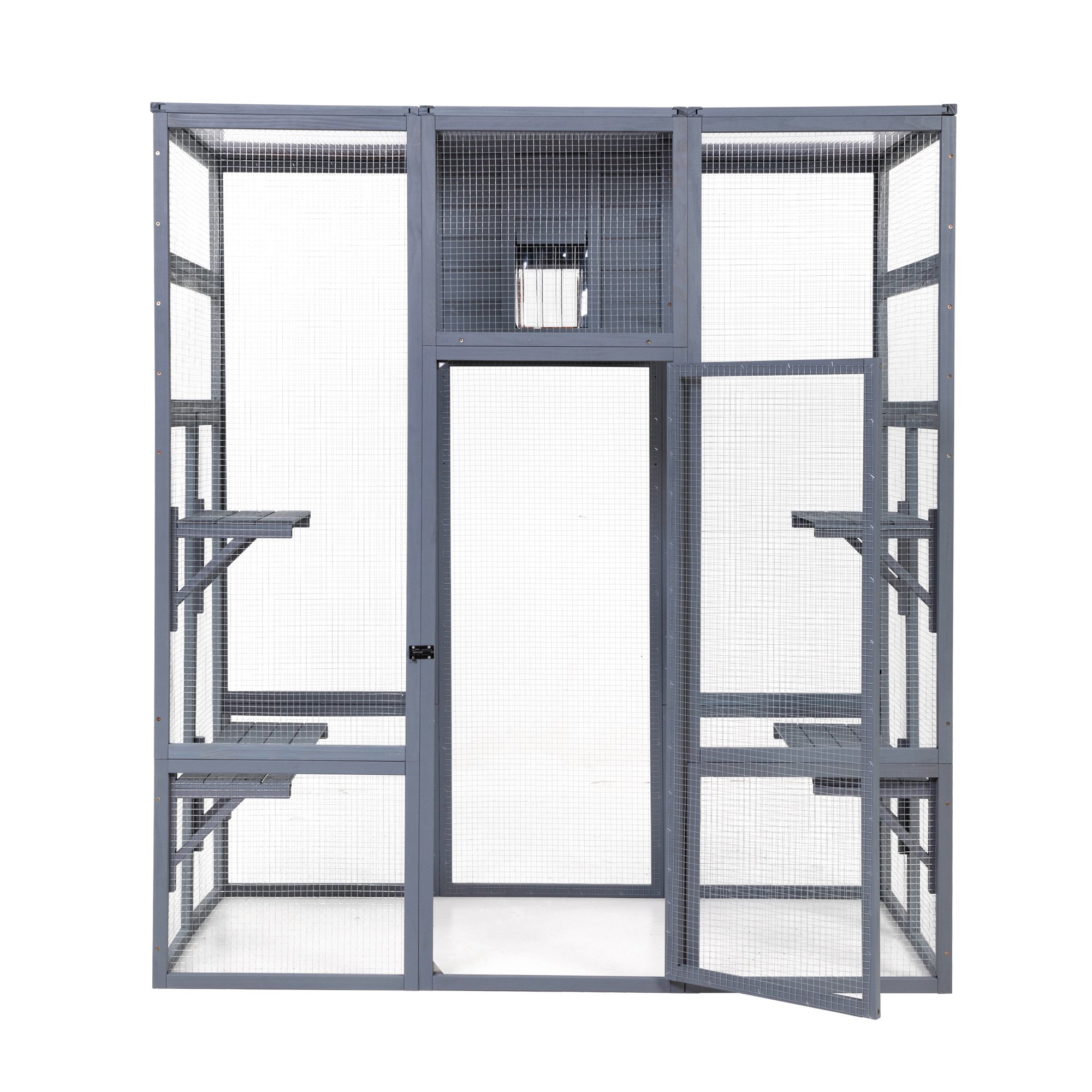 [Outdoor with Sun Roof]: Constructed from sturdy spruce and strong galvanized wire mesh, the cat cage is durable. The waterproof sunshine board roof provides warmth of the sun. A zippered PVC plastic cover offers extra weather protection.