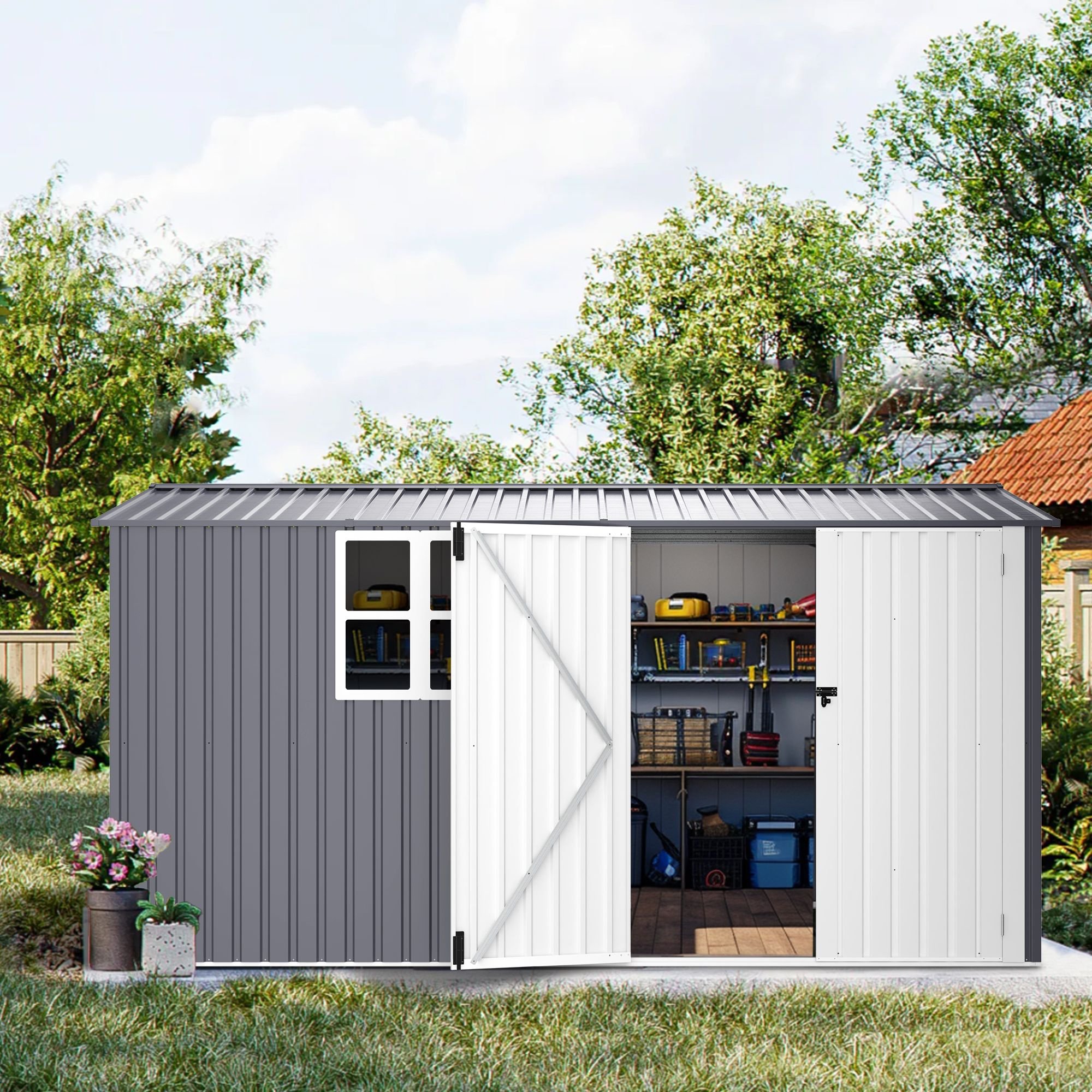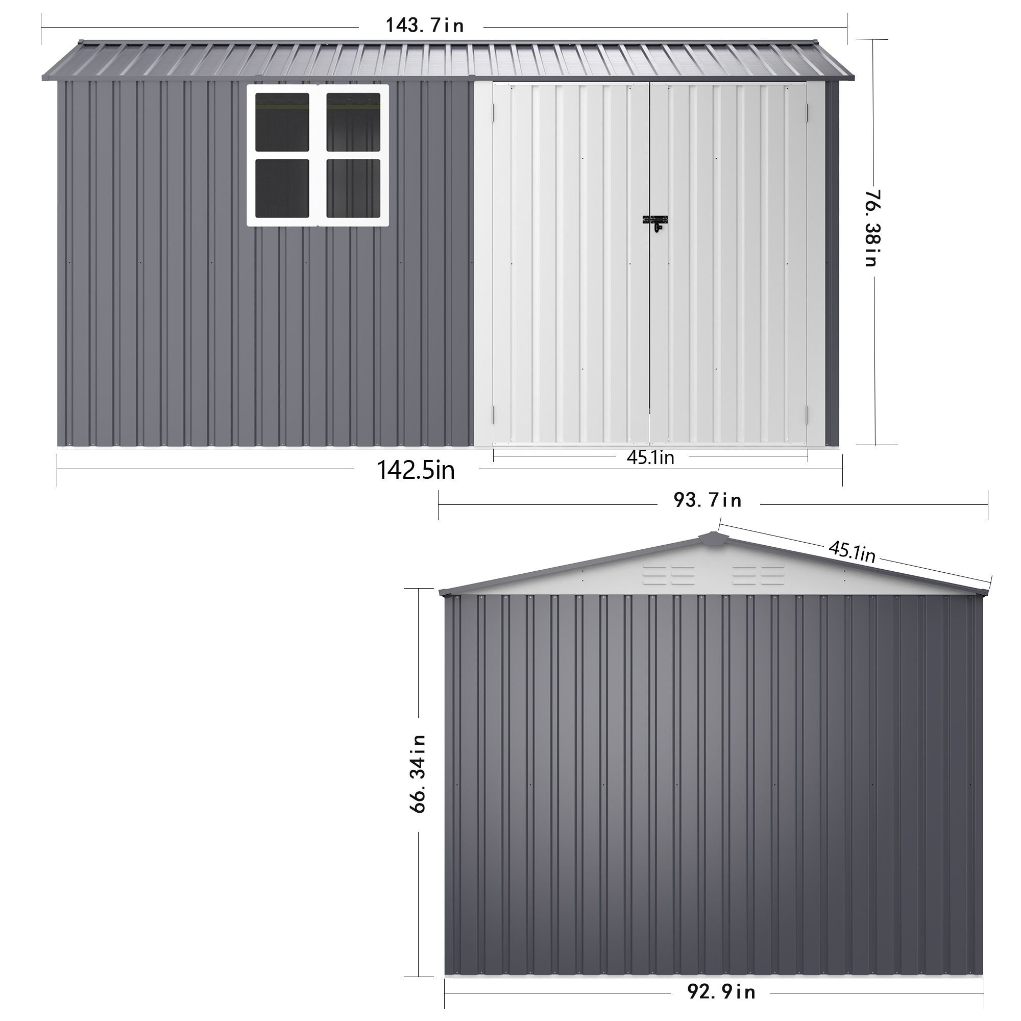 Product Description:This 8' x 12' garden storage shed is an ideal solution for your garden storage problem, suitable for small gardens or areas with limited space,Durable construction with sturdy steel material makes this storage shed last long and UV-resistant,The inclined slope roof adds extra storage and prevents rainwater from gathering .This outdoor storage shed has the perfect size for storing your garden tools. Perfect for your garden, backyard, lawn, and any outdoor space you want.