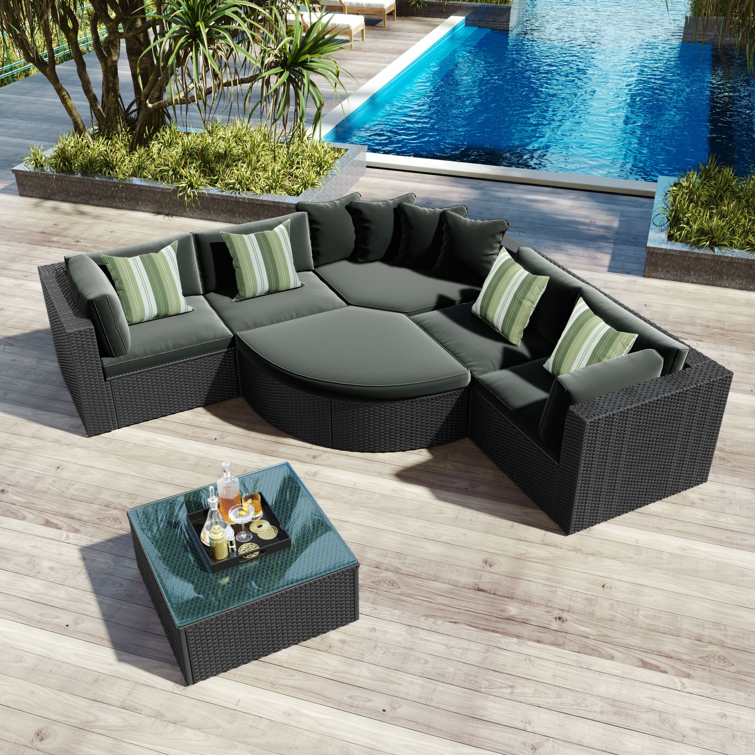 [Assembly and Support] Assembly required; shipping with 4 boxes, the patio furniture set includes: 2 x corner sofa,2 x armless sofa, 1 x fan-shaped sofa, 1 x ottoman, 1 x coffee table. An instruction manual is shipped with the product to assist users install it following the right steps. These illustrations are clear and helpful to ensure two adults can complete the installation process in one hour.