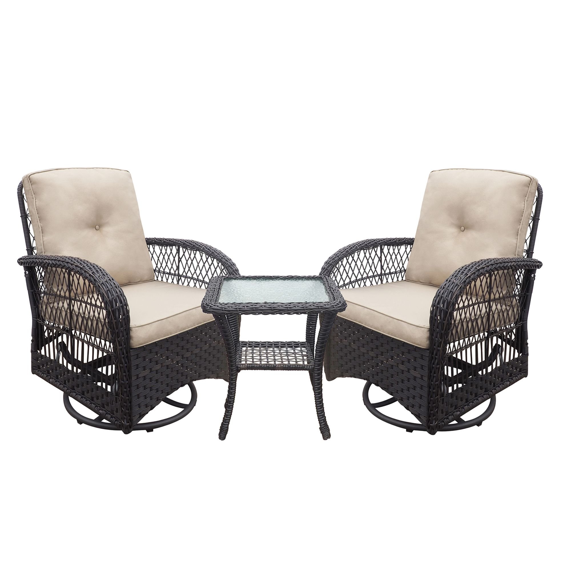 360-Degree Patio Wicker Swivel Rocker Chairs Set;  Outdoor Rattan Rocking Bistro Sets with Cushions and Table; Dark Brown 360-Degree Patio Wicker Swivel Rocker Chairs Set;  Outdoor Rattan Rocking Bistro Sets with Cushions and Table; Dark Brown 360-Degree Patio Wicker Swivel Rocker Chairs Set;  Outdoor Rattan Rocking Bistro Sets with Cushions and Table; Dark Brown
