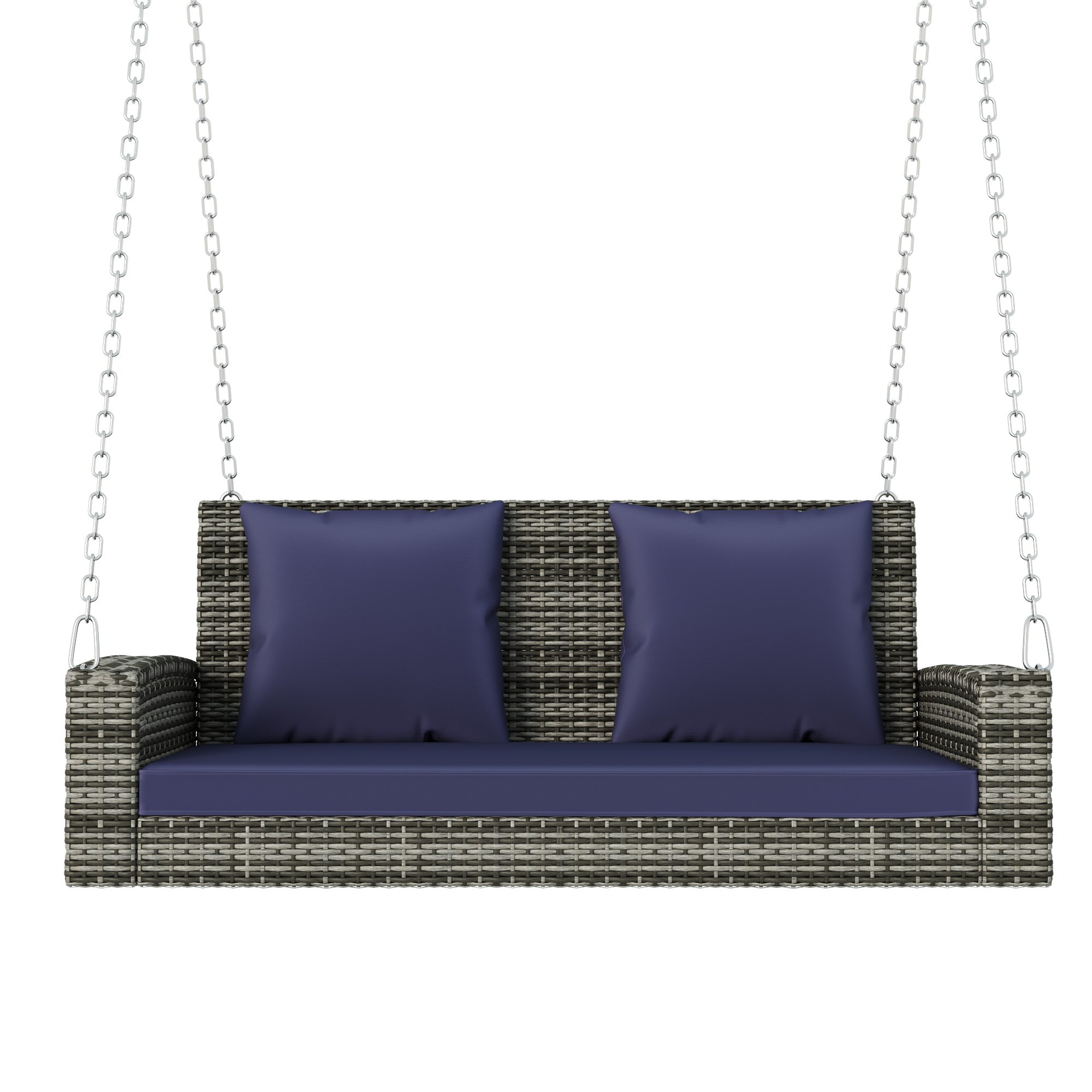 2-Person Wicker Hanging Porch Swing with Chains; Cushion; Pillow; Rattan Swing Bench for Garden; Backyard; Pond 2-Person Wicker Hanging Porch Swing with Chains; Cushion; Pillow; Rattan Swing Bench for Garden; Backyard; Pond 2-Person Wicker Hanging Porch Swing with Chains; Cushion; Pillow; Rattan Swing Bench for Garden; Backyard; Pond