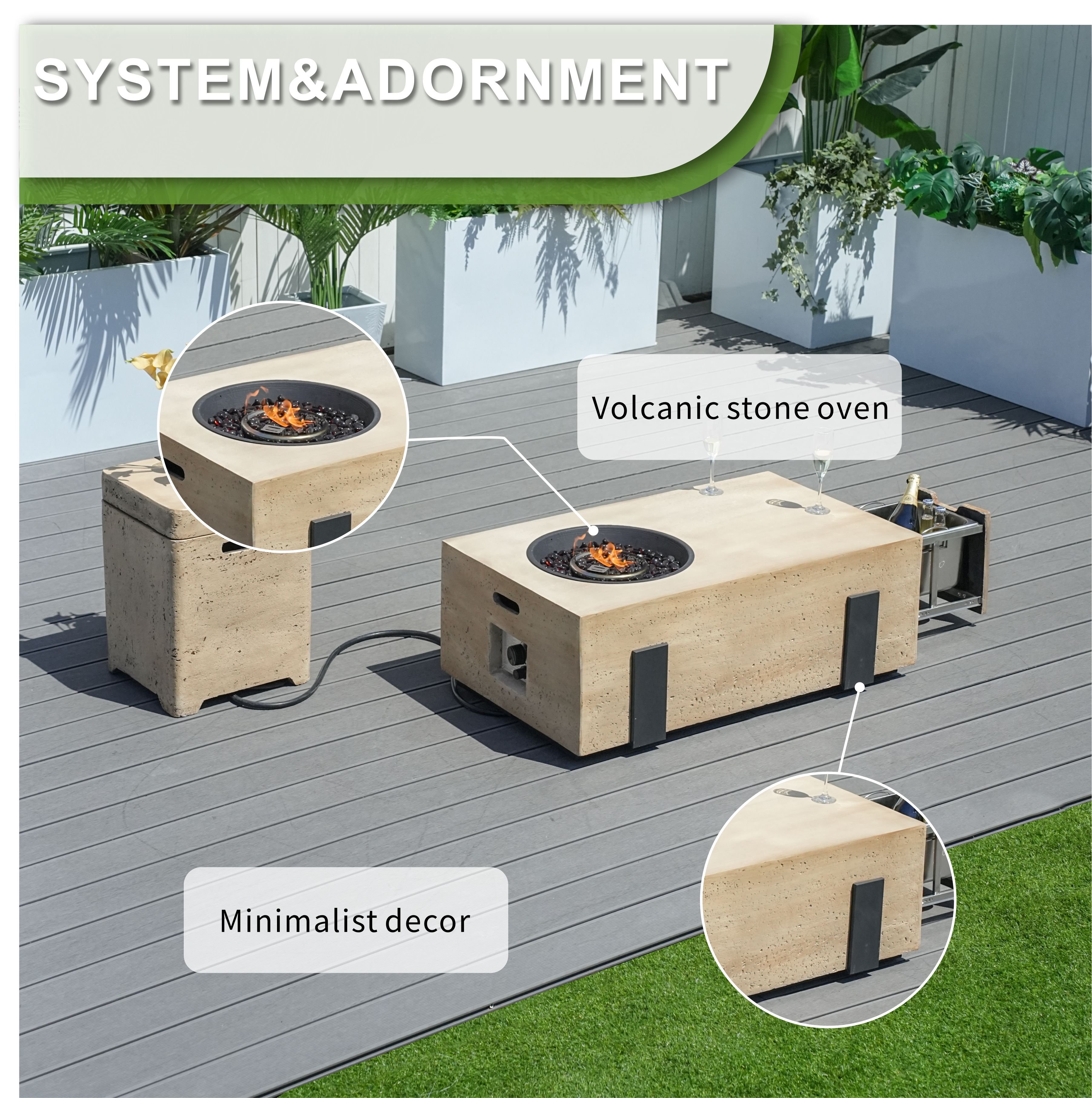 Patio Garden Fire Pit Table Set of 2 with Built-in Ice Bucket, Magnesium Oxide Patio Garden Fire Pit Table Set of 2 with Built-in Ice Bucket, Magnesium Oxide Patio Garden Fire Pit Table Set of 2 with Built-in Ice Bucket, Magnesium Oxide