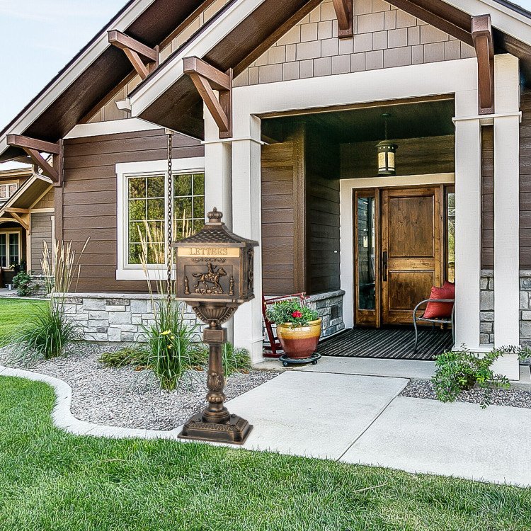 5.Retro Mid-Century Style: With decorative small roofs, relief patterns on the sides, and columns with floral patterns, the retro mid-century postal mailbox creates a luxurious and elegant appearance, which can be a charming scenery to your yard.