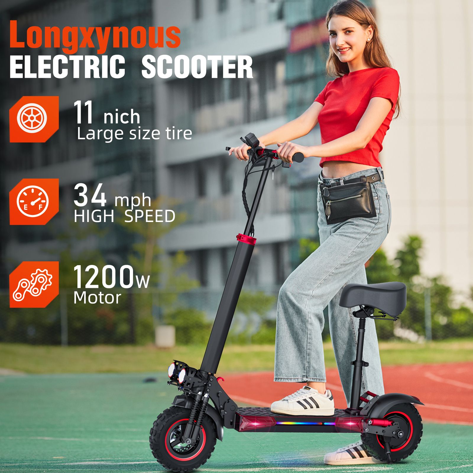 WHOSU 1200W Electric Scooter for Adults with Removable Seat - 27 MPH, 31 Mile Range, 11" Off-Road Tires, 4 Brake System