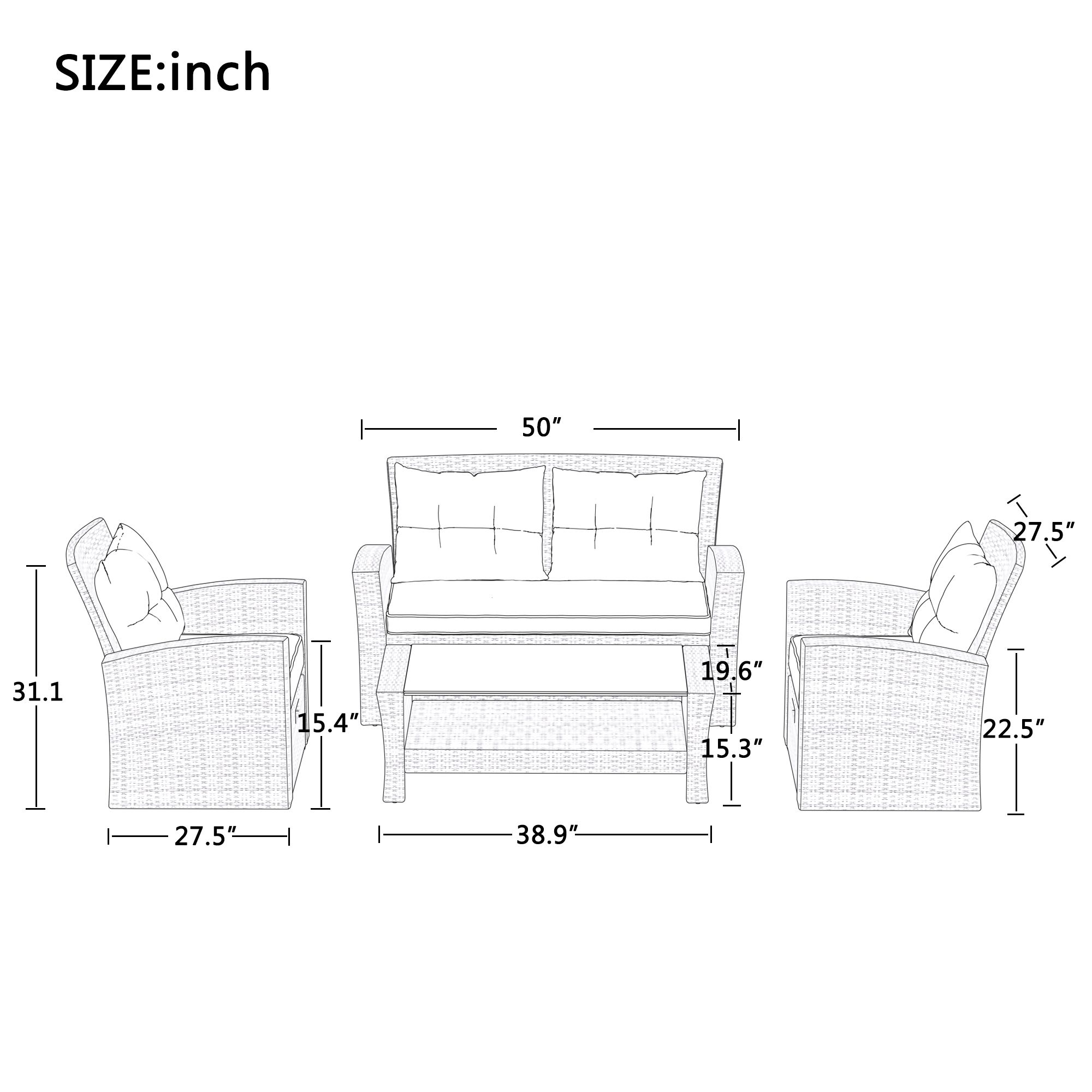 Patio Furniture Set;  4 Piece Outdoor Conversation Set All Weather Wicker Sectional Sofa with Ottoman and Cushions Patio Furniture Set;  4 Piece Outdoor Conversation Set All Weather Wicker Sectional Sofa with Ottoman and Cushions Patio Furniture Set;  4 Piece Outdoor Conversation Set All Weather Wicker Sectional Sofa with Ottoman and Cushions