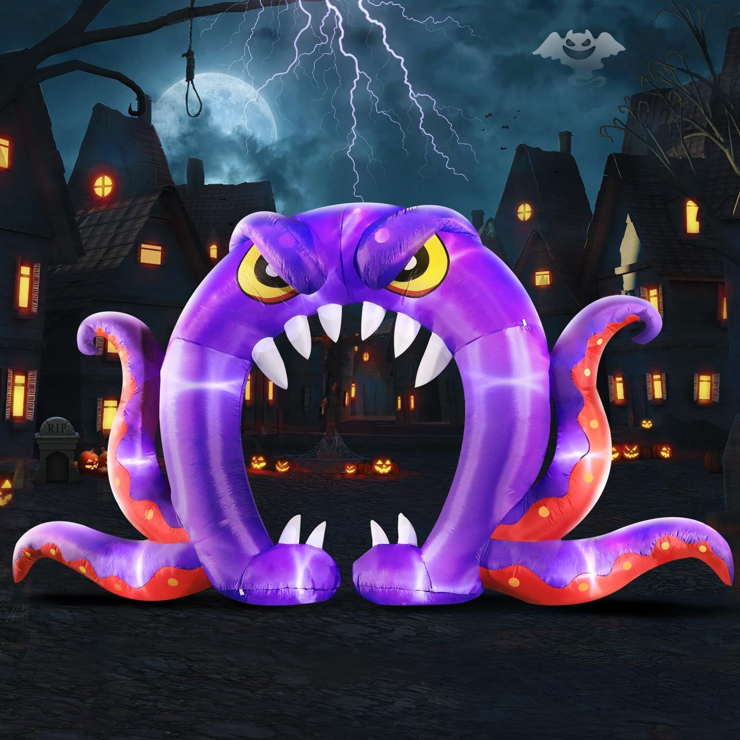 [2024 Upgraded 12 FT Halloween Inflatables with 3-Color Flame Rotating LED]zukakii 12FT Halloween Giant Ghost combined with built-in 3-color flame rotation LED lights, and fully upgrade the air blower power to ensure efficient inflation and standing right up steady, never worry about falling, is a perfect Halloween decoration outdoor to make your yard an unforgettable attraction and adores all ages trick-or-treaters![Spooky Giant Ghost Appearance Creates Fright Halloween Atmosphere]The Halloween blow up yard decorations feature 12FT red-eye towering ghost appearance, raising two paws high as if to pounce forward, the body is covered with spider webs with a big climbing black widow. The built-in bright 3-colored flame rotation LED glowing a flowing flame-like light will light up your yard or front door festively and definitely will be the most eye-catching Halloween decoration among your neighbors[Premium Material with Outstanding Craftsmanship]zukakii Halloween decorations outdoor inflatable adopt high-strength tear-resistant waterproof polyester and are 100% hand-sewn by skilled workers, perfect for outdoor Halloween decorations. Equipped with a powerful blower and UL-certified plug, just put the plug in and the Halloween yard inflatables ghost will blow up to full within 1 minute automatically[Additional Fittings for Easy & Stable Installation]The 6.6FT power cord of the blower helps you place the Halloween inflatables ghost anywhere in your home yard garden. The attached 4 stakes, 4 ropes and a sandbag can fix the Halloween inflatables outdoor decoration on the ground and keep it standing right up firmly, and the upgraded powerful fan will blow enough air, never worry about breeze blowing it down. Zip up the bottom zipper to avoid air leakage, and open for fast deflation[Perfect Halloween Gifts for the Fright Night]zukakii outdoor Halloween decoration is sure to attract both adults and kids, perfect Halloween gifts for Halloween night events, Halloween Costume Party, Haunted House Decor, and More. If any problem, please contact us for 24/7 help