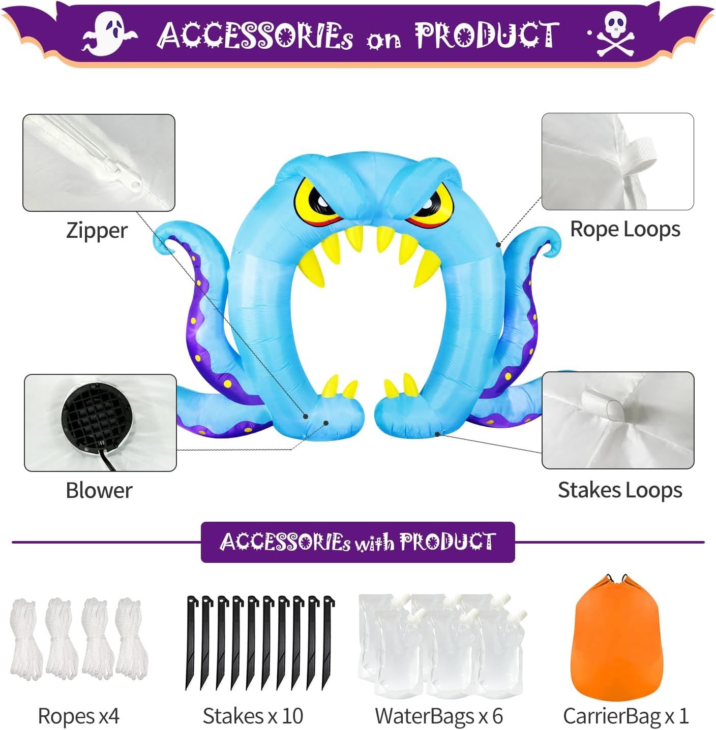 [2024 Upgraded 12 FT Halloween Inflatables with 3-Color Flame Rotating LED]zukakii 12FT Halloween Giant Ghost combined with built-in 3-color flame rotation LED lights, and fully upgrade the air blower power to ensure efficient inflation and standing right up steady, never worry about falling, is a perfect Halloween decoration outdoor to make your yard an unforgettable attraction and adores all ages trick-or-treaters![Spooky Giant Ghost Appearance Creates Fright Halloween Atmosphere]The Halloween blow up yard decorations feature 12FT red-eye towering ghost appearance, raising two paws high as if to pounce forward, the body is covered with spider webs with a big climbing black widow. The built-in bright 3-colored flame rotation LED glowing a flowing flame-like light will light up your yard or front door festively and definitely will be the most eye-catching Halloween decoration among your neighbors[Premium Material with Outstanding Craftsmanship]zukakii Halloween decorations outdoor inflatable adopt high-strength tear-resistant waterproof polyester and are 100% hand-sewn by skilled workers, perfect for outdoor Halloween decorations. Equipped with a powerful blower and UL-certified plug, just put the plug in and the Halloween yard inflatables ghost will blow up to full within 1 minute automatically[Additional Fittings for Easy & Stable Installation]The 6.6FT power cord of the blower helps you place the Halloween inflatables ghost anywhere in your home yard garden. The attached 4 stakes, 4 ropes and a sandbag can fix the Halloween inflatables outdoor decoration on the ground and keep it standing right up firmly, and the upgraded powerful fan will blow enough air, never worry about breeze blowing it down. Zip up the bottom zipper to avoid air leakage, and open for fast deflation[Perfect Halloween Gifts for the Fright Night]zukakii outdoor Halloween decoration is sure to attract both adults and kids, perfect Halloween gifts for Halloween night events, Halloween Costume Party, Haunted House Decor, and More. If any problem, please contact us for 24/7 help