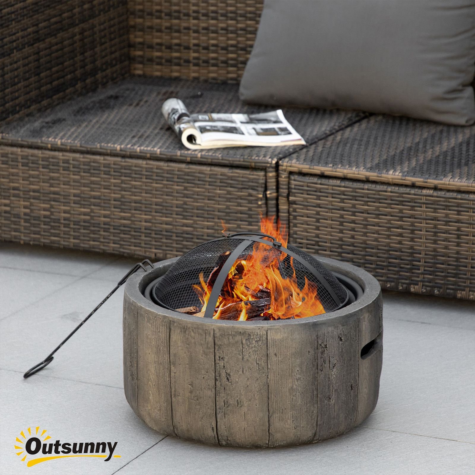 Whether you want to enjoy a barbecue beside the fire or curl up in warmth, our fire pit brings your outdoor lounge area to a new level. Crafted with a large metal bowl with woodgrain style, it's built with a high capacity, so you don't have to worry about frequent firewood refills. The provided poker can keep logs burning steadily, and offers a safe way to remove the protective top. Its rustic yet modern design is sure to be a shining centerpiece on your patio. Keep the fire going with Outsunny.