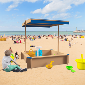 Children's Wooden Sandbox with Adjustable Canopy, Sandpit with Covers Kids Wood Playset Outdoor Backyard - Upgrade Retractable
