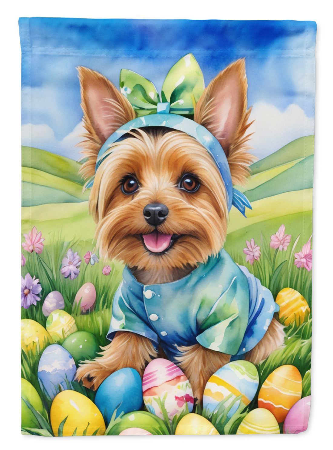 Garden Flag featuring breed specific Silky Terrier artwork. Celebrate Easter with this Easter Garden Flag. Enhance the beauty of your garden, patio, or yard with Caroline's Treasures Decorative Garden Flag, proudly made in the USA. Crafted from two pieces of thick, double-sided polyester fabric, this 2-ply garden flag is designed to withstand various weather conditions, making it water-resistant and weatherproof. Featuring correctly readable words on both sides, this garden flag offers a delightful visual experience from any angle. With its heavier weight, it stands out among other garden flags, ensuring stability and durability even in wind, rain, and snow. Measuring approximately 11 1/4 inches by 15 1/2 inches, this flag allows you to personalize your outdoor decor. It comes with a 1 1/2-inch sleeve sewn in, allowing easy attachment to any standard garden flag stand or garden size porch hanger (sold separately). Make a statement in your outdoor space with Caroline's Treasures Decorative Garden Flag, a vibrant and high-quality flag that adds color and personality to your surroundings. Proudly made in the USA, it's a symbol of quality craftsmanship and attention to detail.