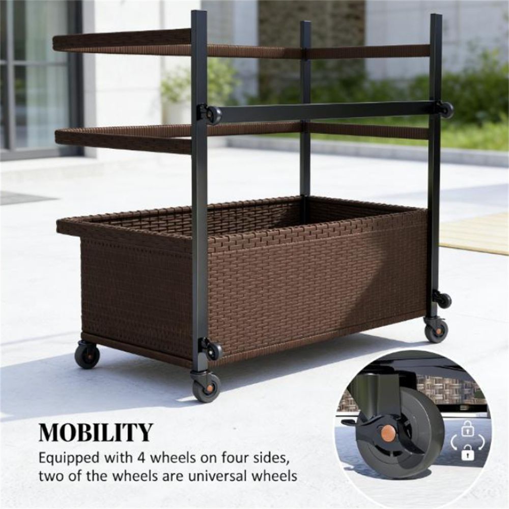 - Three-section storage cart: two compartments and a long basket