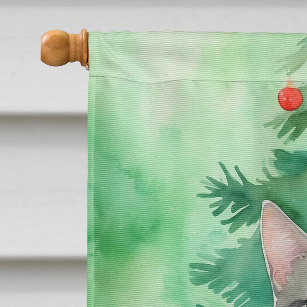 Ural Rex Cat By the Christmas Tree House Flag Large Porch Sleeve Pole Decorative Outside Yard Banner Artwork Wall Hanging, Polyester, House Size
