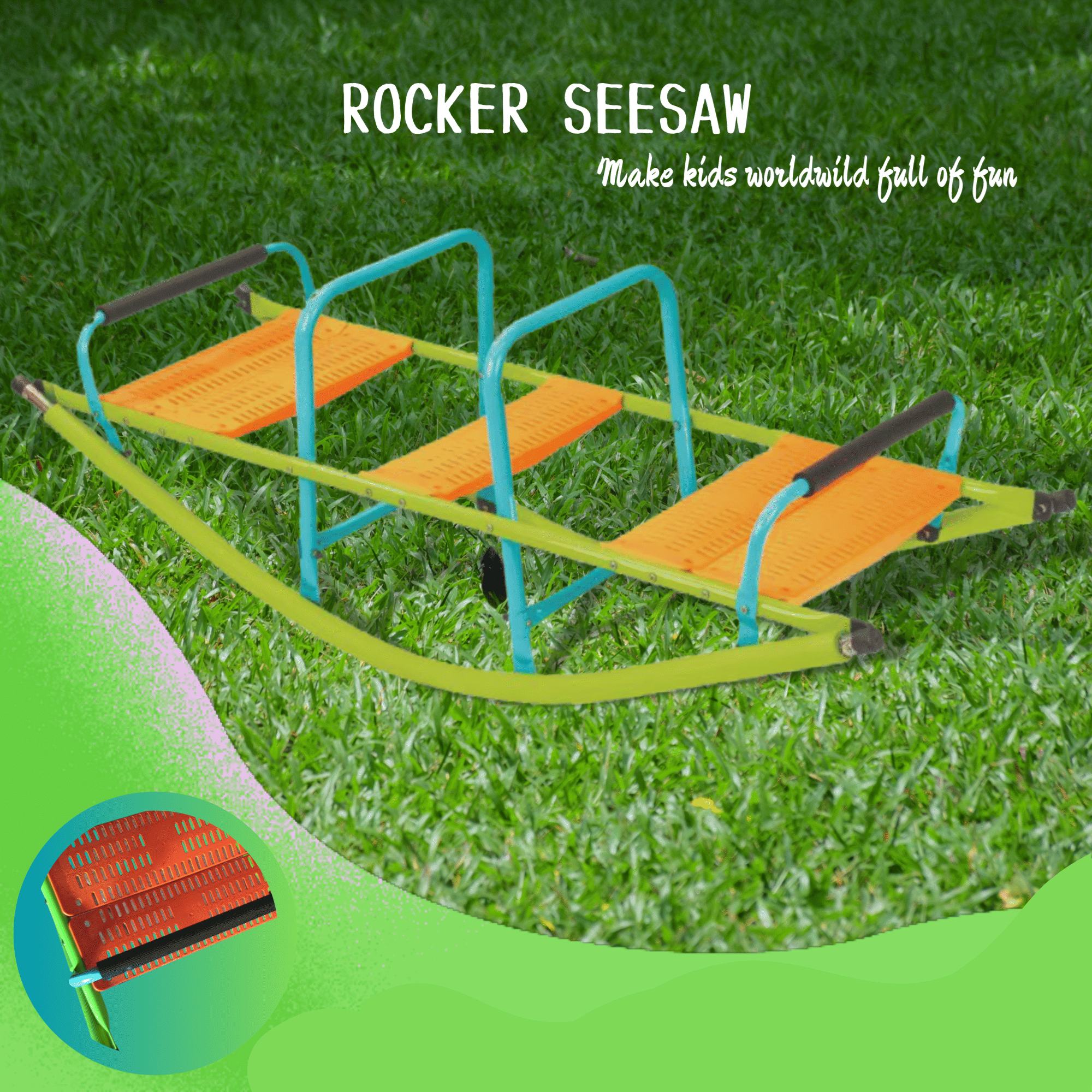Rocker SeesawWelcome to our store! We are proud to introduce our latest product - the Rocker Seesaw! This seesaw features a rocking boat design that allows children to experience the thrill of rocking back and forth, while improving their balance and coordination skills. In addition, the Rocker Seesaw is easy to assemble and disassemble, making it convenient for you to enjoy playtime anytime, anywhere. Our seesaw is made of high-density polyethylene (HDPE) and steel pipes, which are extremely durable and can withstand years of use. Furthermore, our seesaw has an anti-slip design to ensure your child's safety while playing. The Rocker Seesaw is suitable for children aged 2-6 and is a great outdoor toy that allows children to play and enjoy the sunshine and fresh air. If you are looking for a fun, practical, and safe outdoor toy, the Rocker Seesaw is definitely your best choice!